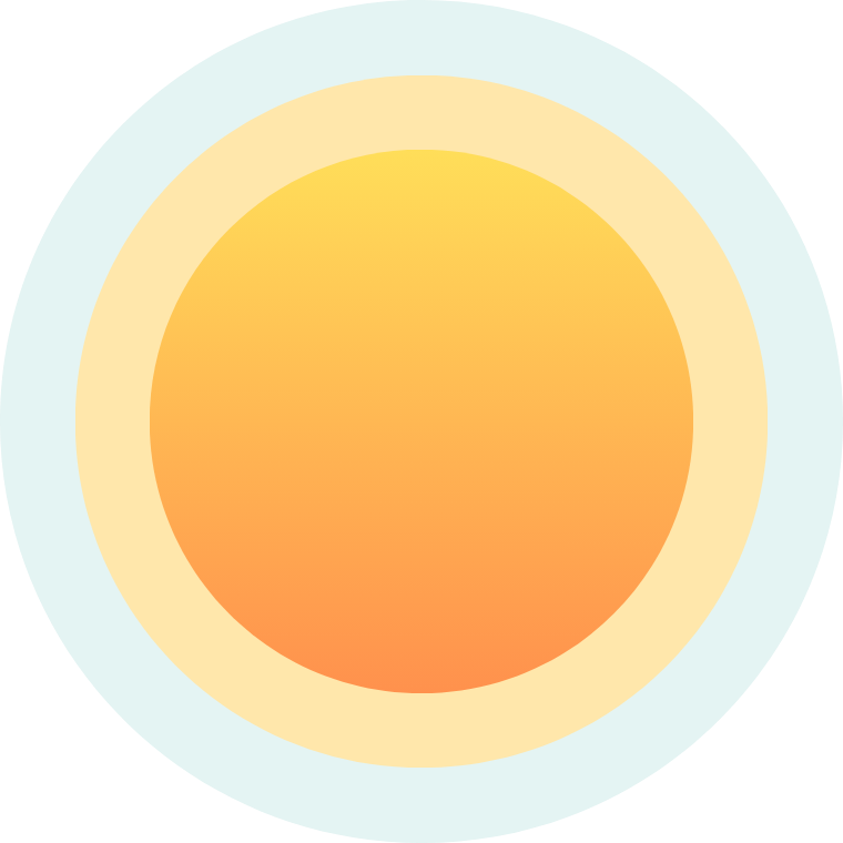 A stylized graphic of a sun with a gradient from yellow to orange, surrounded by light blue and white radiating layers.